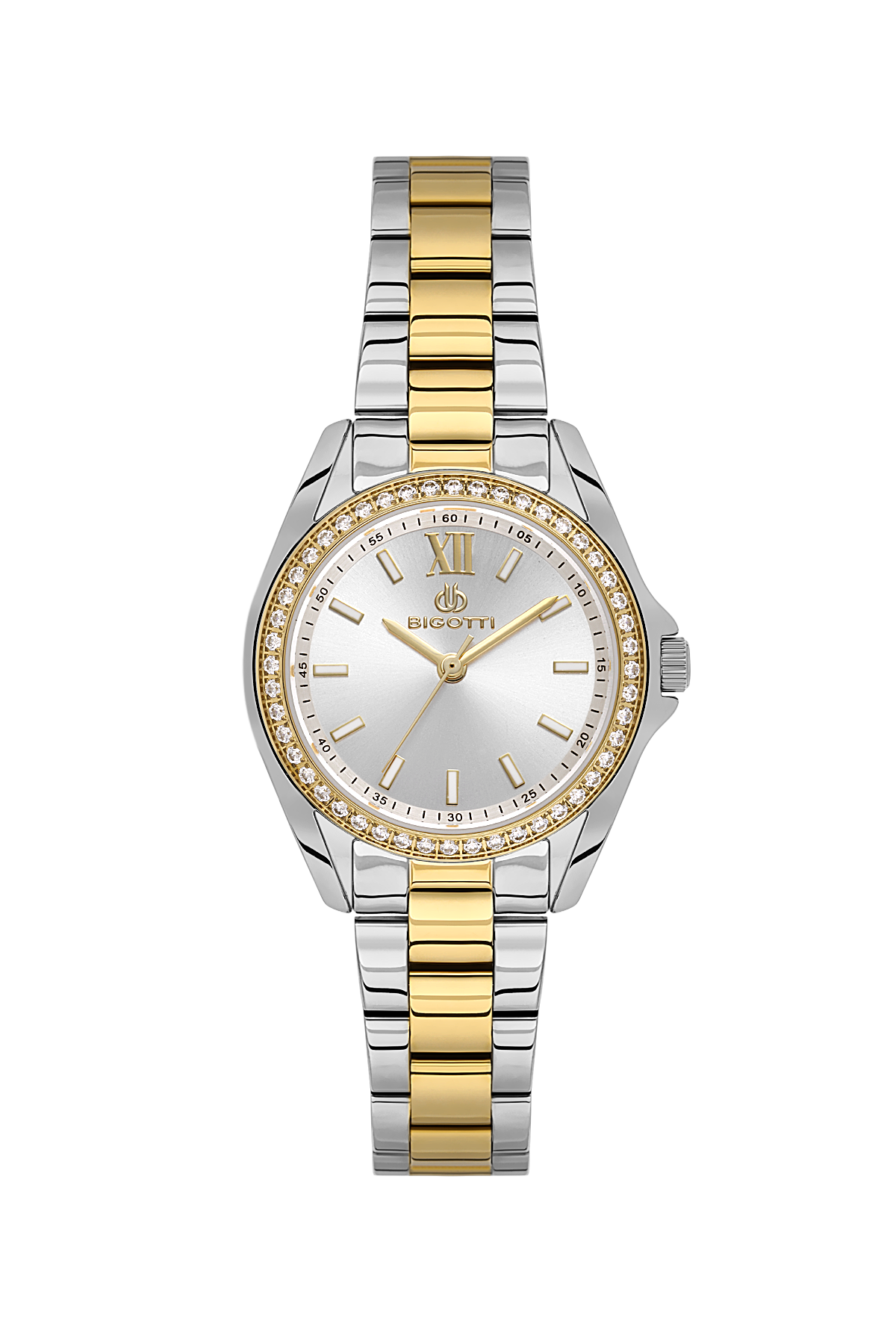 Upgrade your accessory collection with this analog watch from the house of Bigotti Milano. The Silver dial and Silver & Gold Metal Band of this watch for Women offer high quality as well as lightweight feel. Designed to perfection, this watch will go well with formals and casuals too.