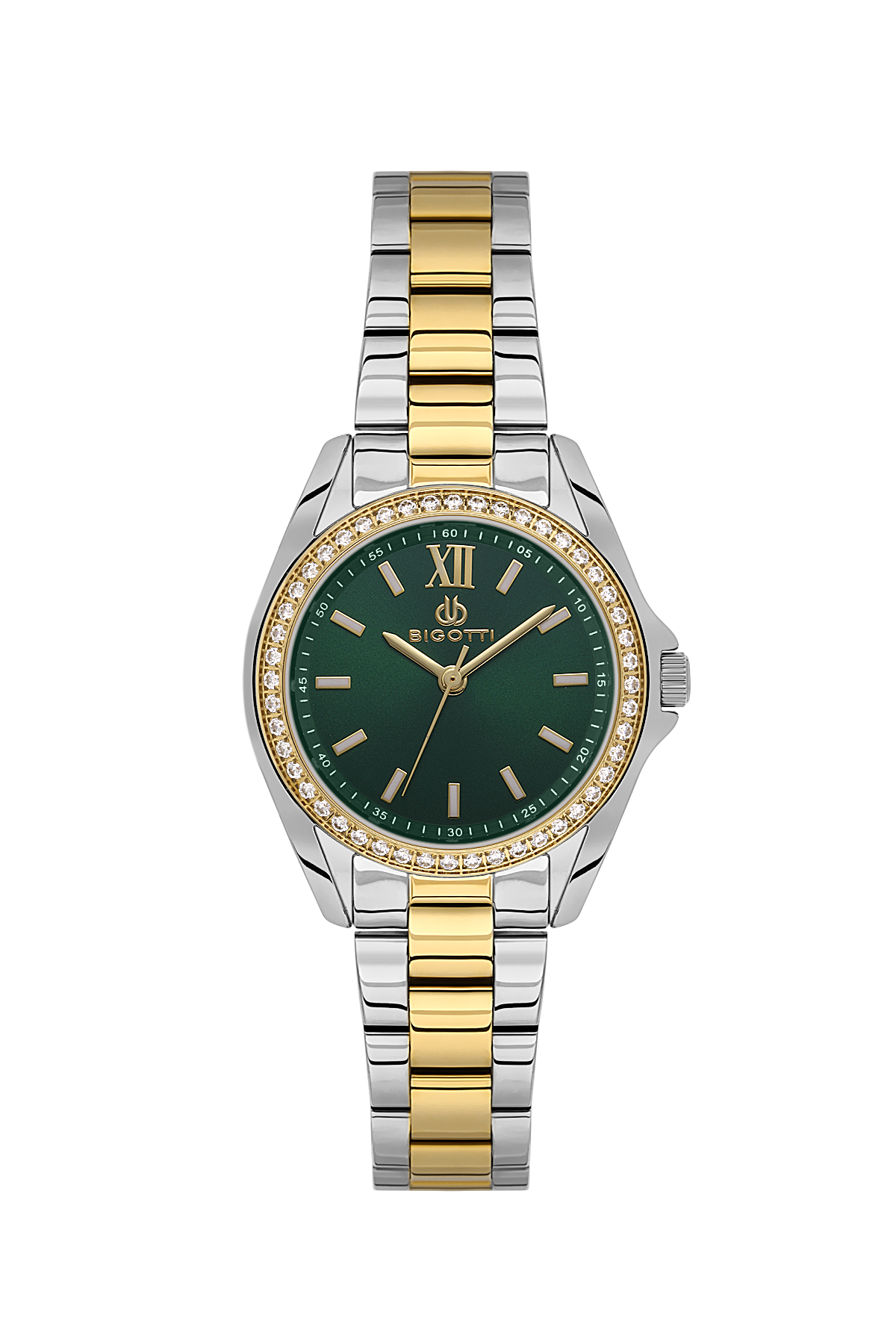 Upgrade your accessory collection with this analog watch from the house of Bigotti Milano. The Green dial and Silver & Gold Metal Band of this watch for Women offer high quality as well as lightweight feel. Designed to perfection, this watch will go well with formals and casuals too.